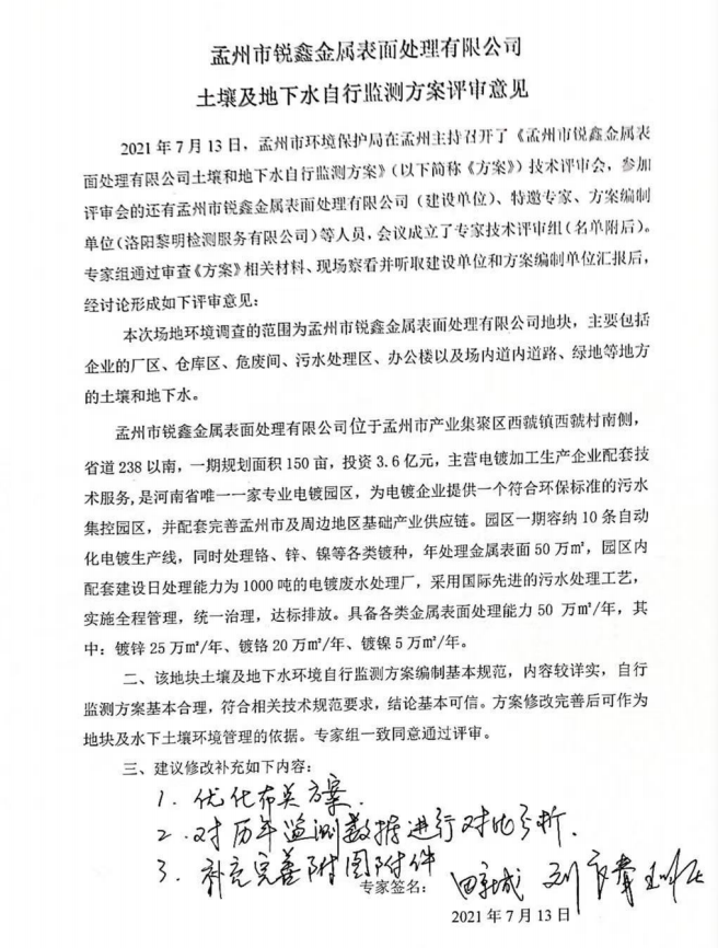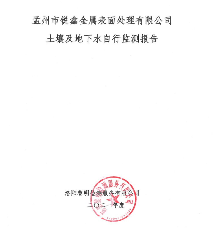 孟州市銳鑫金屬表面處理有限公司2021年度土壤和地下水自行監(jiān)測報(bào)告公示