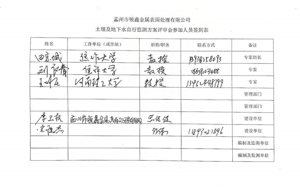 孟州市銳鑫金屬表面處理有限公司土壤及地下水自行監(jiān)測報(bào)告